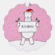 This beautiful illustration by Helen McCartney Designs shows a fluffy polar bear wearing a Christmas hat. The bear is holding a banner with a name of your choice.