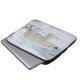 The sleeve is made of nice feeling material and seems very durable. I'm not sure how easy it'll be to clean, but the construction seems sound and the fabric is quick thick. I also like the double zipper. The printing is lovely and appears durable. The white on black contrast is nice, and the design very elegant.