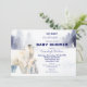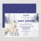 Invite guests to a special baby shower with this neutral themed, polar bear, winter wonderland theme made with watercolors. Lovely navy blue and cream white, snow covered, forest background with mama bear and cub at front left. A white, winter bunny, at top right on a snow covered hill. Templates provided, so you can easily make these for your party.