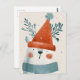 Polar Bear Wearing Santa Hat Minimalist Christmas Postcard
