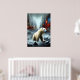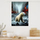 A cute and adorable polar bear in the city in the winter time. This is a AI generated art.
