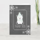 A baby shower thank you card featuring an illustration of a baby polar bear wearing a green hat and scarf over a chalkboard inspired background with snowflake designs at top left and bottom right. Matching baby shower invitations at coordinating items are available at Jill's Paperie.