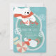 This cute "pool party" birthday invitation features one polar bear with a red scarf is just about to jump into a pool while the other polar bear with a red cape is relaxing and floating in a turquoise blue coloured swimming pool with a inner tube on blue background with snowflakes. The reverse side features blue background with snow like white random dot patterns. Change the background colour of both the front and the back, and personalise it for your needs. You can find more polar bear products at my store.