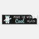 This bumper sticker features a white polar bear with light blue swim ring and cap to raise awareness about climate change to make the world cool again.