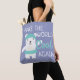 This tote bag features a white polar bear with light blue swim ring and cap to raise awareness about climate change to make the world cool again.