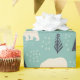 This cool winter patterned wrapping paper is perfect for adding a sleek, modern look to your Christmas presents. With it's frosty light teal background and simple illustrations of ivory or cream coloured polar bears and navy blue coloured evergreens its perfect for the holidays and other winter events.
