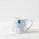 Cuddly polar bears surrounded by Christmas trees and snowflakes against an ice blue background