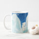 Mum and two baby polar bears in arctic winter. Book illustration.