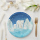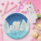 Mum and two baby polar bears in arctic winter. Book illustration.
