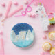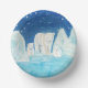 Mum and two baby polar bears in arctic winter. Book illustration.