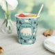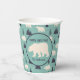 Serve up holiday cooking in style with these personalised Christmas paper cups. These festive plates feature a cool winter themed pattern of hand-drawn style polar bears and dark navy blue evergreen trees against a light teal background. At the centre of the cups is your own message and name in fun navy blue lettering.