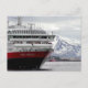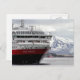 The Hurtigruten cruise ship arriving harbour in late Spring, in the background the mountains surrounding Tromsø are still covered with white snow.