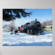 Old steam engine locomotive and a snow covered landscape - Railroad Museum, Tooele, UT
