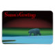 A polar bear roams the ice during the long polar night; the Northern Lights in red and green glow in the distance. "Season's Greetings" also appears in red.