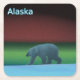 A polar bear roams the ice during the long polar night; the Northern Lights in red and green glow in the distance. Text reading "Alaska" in glowing blue and white also appears.