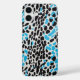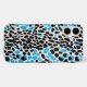Unleash your wild side with this striking phone case featuring a bold leopard-inspired pattern. The black spots are layered on a sleek white background, accented with vivid splashes of blue, creating a modern and stylish look. This design is perfect for animal print lovers who want to make a statement.