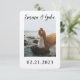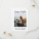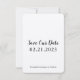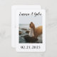 This save the date card is simple in the most perfect way. The black and white fonts balance the colours in the picture. Showcase your favourite picture from your engagement shoot or your proposal with your name and date. It will look great on all of your guests fridge. Extra details are added to the back to keep the simple nature of the front of the card.