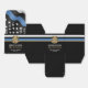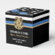 This design features a police force flag with black and white stripes, and a thin blue line stripe as well. A great way to say congratulations to the new police academy graduate and say thank you to your party guests. Customise with the name of the graduating law enforcement officer in gold. Celebrate this milestone in style!