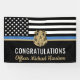 This design features a police force flag with black and white stripes, and a thin blue line stripe as well. A great way to say congratulations to the new police academy graduate. Customise with the name of the graduating law enforcement officer in gold. Celebrate this milestone in style!
