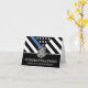 This design features a police force flag with black and white stripes, and a thin blue line stripe as well. A great way to say congratulations to the new police academy graduate. Customise with the name of the graduating law enforcement officer in gold. Celebrate this milestone in style!