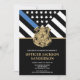 Honour the dedication and hard work of a new law enforcement officer with this customisable police graduation invitation. Featuring the a police badge and the police force flag with bold black and white stripes and a proud thin blue line, this design symbolises strength, service, and sacrifice. The invitation is personalised with the graduate’s name in gold lettering, making it a memorable keepsake for friends, family, and fellow officers. Perfect for celebrating a police academy graduation, promotion, or milestone in a future officer’s career. Invite your guests in style and show support for the newest member of the thin blue line community.
