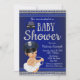 Girls Police baby shower invitation with adorable baby girl wearing a white tutu, string of pearls and police hat on a blue and silver background. This cute police baby shower invitation is easily customised for your event by simply adding your details in the font style of your choice. This is a printed design with no real foil, jewels, etc.