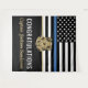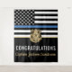 This design features a police force flag with black and white stripes, and a thin blue line stripe as well. Customise with the name of the retiring or graduating law enforcement officer, sheriff, captain, or chief. A great way to say congratulations to the new retiree or graduate for their retirement or graduation from police academy.