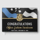 A great way to say congratulations to the new retiree for their retirement. This design features a police force flag with black and white stripes, and a thin blue line stripe as well. Customise with the name of the retiring law enforcement officer, sheriff, captain, or chief. Celebrate this milestone in style!