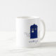 Quirky and fun Police Box Swirls Mug featuring a brilliant blue vintage British police box flanked by cascades of swirl flourishes and blue stars. Easy to customise, simply add your name or other personalised text. Click "Customise It" to find more personalisation options.