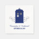 Quirky and fun Police Box Wedding Paper Napkins featuring a brilliant blue vintage police box flanked by swirl flourishes and blue stars. Easy to customise, simply add your wedding details in the text fields provided. Click "Customise It" to find more personalisation options.
