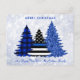 Send Merry Christmas greetings to friends and family with this Unique Police Christmas Card - Thin Blue Line, black and blue plaid and blue glitter trees on a silver snow glitter background design . Personalise with family name.. This police Christmas card is perfect for police families or police department christmas cards. COPYRIGHT © 2022 Judy Burrows, Black Dog Art - All Rights Reserved. Police Christmas Blue Plaid Glitter Tree Festive Holiday Postcard