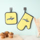 Police helicopter cartoon illustration oven mitt & pot holder set