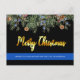 Send Merry Christmas greetings to friends, family, fellow law enforcement departments and your community with this unique Thin Blue Line Police Merry Christmas Card - Modern black and blue with holly leaves and berries with gold script. Personalise with message and family name . COPYRIGHT © 2020 Judy Burrows, Black Dog Art - All Rights Reserved. Police Merry Christmas Thin Blue Line Holiday Postcard