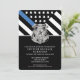Honour the dedication and hard work of a new law enforcement officer with this customisable police graduation invitation. Featuring a [police badge and the police force flag with bold black and white stripes and a proud thin blue line, this design symbolises strength, service, and sacrifice. The invitation is personalised with the graduate’s name and party details, making it a memorable keepsake for friends, family, and fellow officers. Perfect for celebrating a police academy graduation, promotion, or milestone in a future officer’s career. Invite your guests in style and show support for the newest member of the thin blue line community.