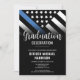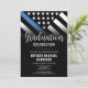 Honour the dedication and hard work of a new law enforcement officer with this customisable police graduation invitation. Featuring the police force flag with bold black and white stripes and a proud thin blue line, this design symbolises strength, service, and sacrifice. The invitation is personalised with the graduate’s name and party details, making it a memorable keepsake for friends, family, and fellow officers. Perfect for celebrating a police academy graduation, promotion, or milestone in a future officer’s career. Invite your guests in style and show support for the newest member of the thin blue line community.