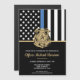 Honour the dedication and hard work of a new law enforcement officer with this customisable police graduation invitation. Featuring the a police badge and the police force flag with bold black and white stripes and a proud thin blue line, this design symbolises strength, service, and sacrifice. The invitation is personalised with the graduate’s name in gold lettering, making it a memorable keepsake for friends, family, and fellow officers. Perfect for celebrating a police academy graduation, promotion, or milestone in a future officer’s career. Invite your guests in style and show support for the newest member of the thin blue line community.