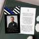 Honor a brave and dedicated police officer with this elegant memorial prayer card featuring a dignified thin blue line flag design and a personalized photo tribute. The front showcases their picture framed in black and gold with the heartfelt sentiment IN LOVING MEMORY. The back includes a comforting prayer to support family and friends as they remember an officer who served with courage, honor and unwavering commitment. A meaningful keepsake for a police funeral, memorial service or Celebration of Life, this prayer card offers a lasting tribute to their service and sacrifice. Its small and portable size of 3.5x2" (wallet-sized) makes it convenient for loved ones to carry it with them as a reminder of your loved one’s life and spirit.