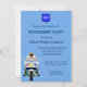 Retirement invitation for a retiring police officer. Design has a police motorcycle and a police officer with the words you are invited to a retirement party. Put your police department initials in the badge at the top of the invitation. Easy to customise with your party details.