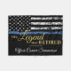 This design features a police force flag with black and white stripes, and a thin blue line stripe as well. "The Legend is Retiring" text sits above the customisable name of the retiring law enforcement officer, sheriff, captain, or chief. Celebrate this milestone in style!