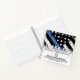 This design features a police force flag with black and white stripes, and a thin blue line stripe as well. This guest book is great for showing appreciation to an officer celebrating an anniversary or thanking a retiring law enforcement officer, sheriff, captain, or chief for their years of service.