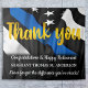 Thank You! Congratulations & Happy Retirement! Add the finishing touch to your police retirement with these thin blue line police retirement banners and party supplies. USA American flag design in Police Flag colours, modern design with gold script thank you. This police retirement collection will be a favourite. Personalise with officers name, and personalise text for retirement party or police anniversary. See our thin blue line collection for matching police retirement invitations, police gifts, party favours, and supplies. COPYRIGHT © 2020 Judy Burrows, Black Dog Art - All Rights Reserved. Police Retirement Blue Gold Script Law Enforcement Banner Tapestry