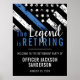 This design features a police force flag with black and white stripes, and a thin blue line stripe as well. "The Legend is Retiring" text sits above all of the party details for the retiring law enforcement officer, sheriff, captain, or chiefs retirement party.