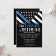This design features a police force flag with black and white stripes, and a thin blue line stripe as well. "The Legend is Retiring" text sits above all of the party details for the retiring law enforcement officer, sheriff, captain, or chiefs retirement party details.