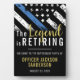 This design features a police force flag with black and white stripes, and a thin blue line stripe as well. "The Legend is Retiring" text sits above all of the party details for the retiring law enforcement officer, sheriff, captain, or chiefs retirement party.
