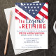 This design features an American flag and red, white and blue colour scheme for a retiring police officer. "The Legend is Retiring" text sits above all of the party details for the retiring law enforcement officer, sheriff, captain, or chiefs retirement party details.