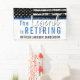 This design features a police force flag with black and white stripes, and a thin blue line stripe as well. "The Legend is Retiring" text sits above the customisable name of the retiring law enforcement officer, sheriff, captain, or chief. Celebrate this milestone in style!