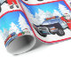 Christmas gift wrapping paper for police . Police Santa with police car in winter scene..