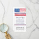 Patriotic sympathy memorial thank you for police officer- Reads "Thank You" with a message of gratitude in blue script lettering. Option to change the sentiment to your own personalised words of thanks. Top has watercolor look USA flag with one stripe in solid blue to symbolise the thin blue line. The bottom reads 'From the Family of' with personalised police officer's name and dates below. Elegant memorial card to honour officer and express thanks to friends and loved ones for their support and sympathy.
