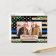 Send Merry Christmas greetings to friends and family with this unique Thin Blue Line Police Christmas Card - American Flag in police flag colours, modern black and blue with holly leaves and berries on a wood background. Personalise with your favourite family photo and name . COPYRIGHT © 2020 Judy Burrows, Black Dog Art - All Rights Reserved. Police Thin Blue Line American Flag Christmas Holiday Postcard