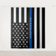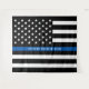 This tapestry features a black and white police thin blue line American flag along with an officer's name for you to personalise. Perfect to have at retirement parties for photos.